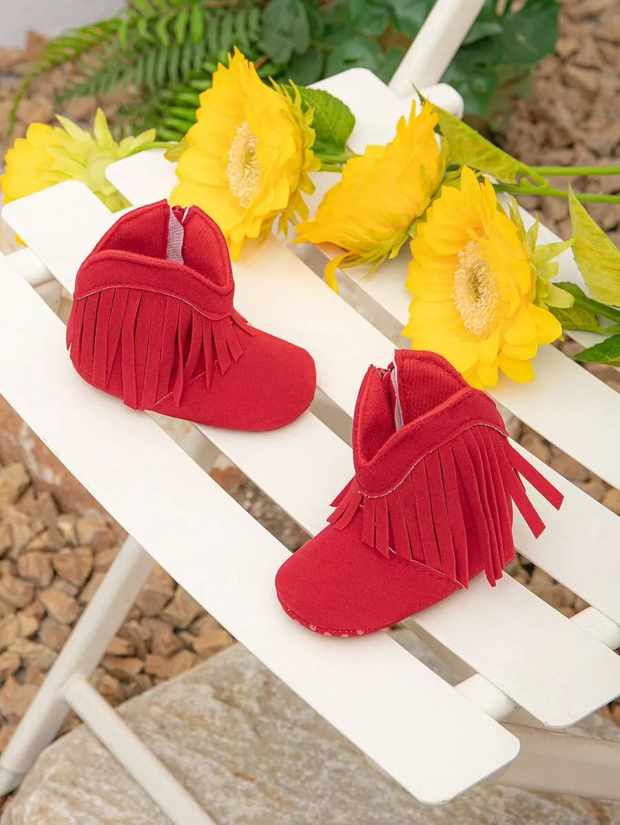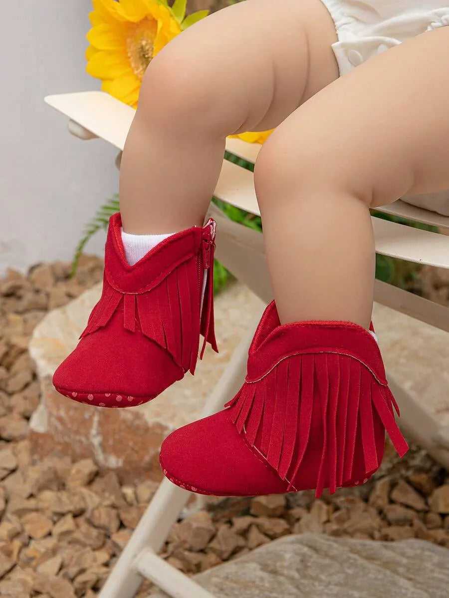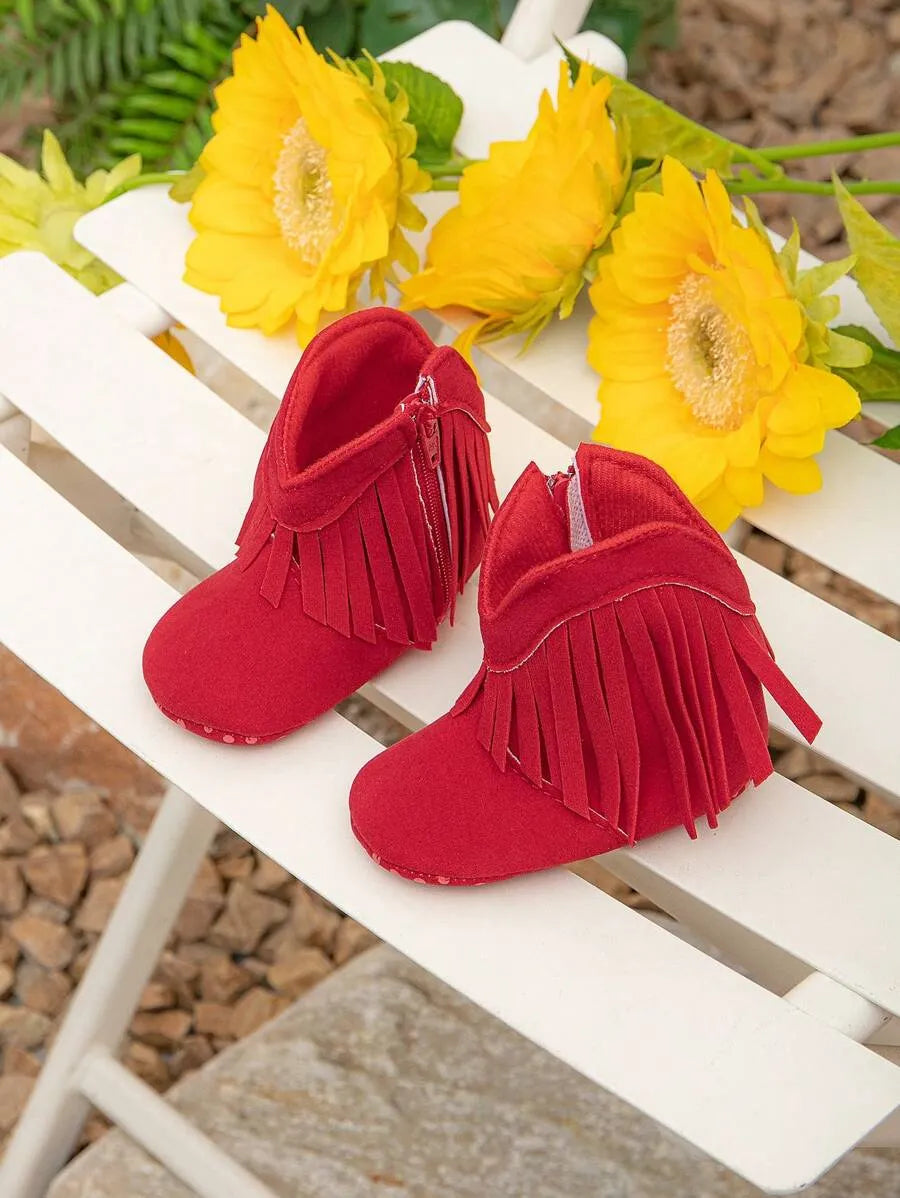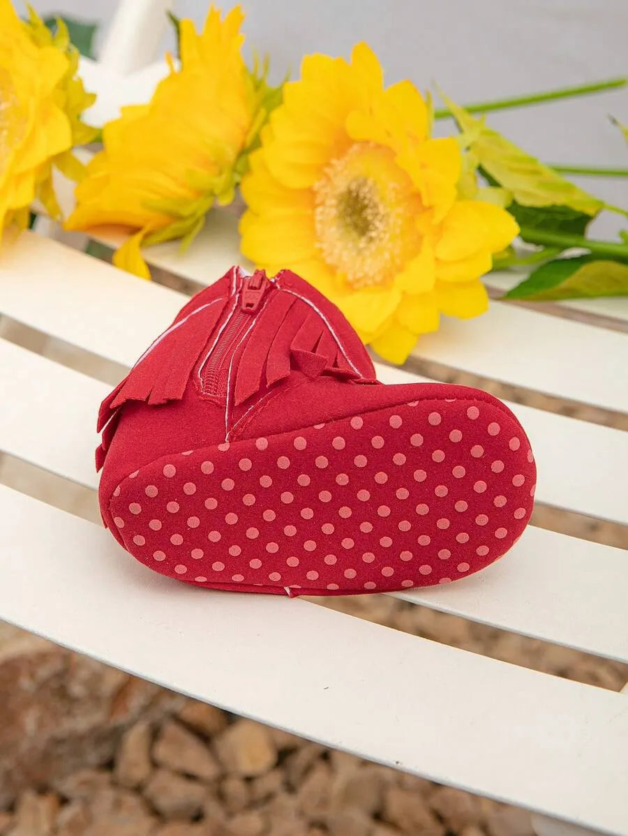 Botinha Antiderrapante para Bebê Menina com Franja Vermelha