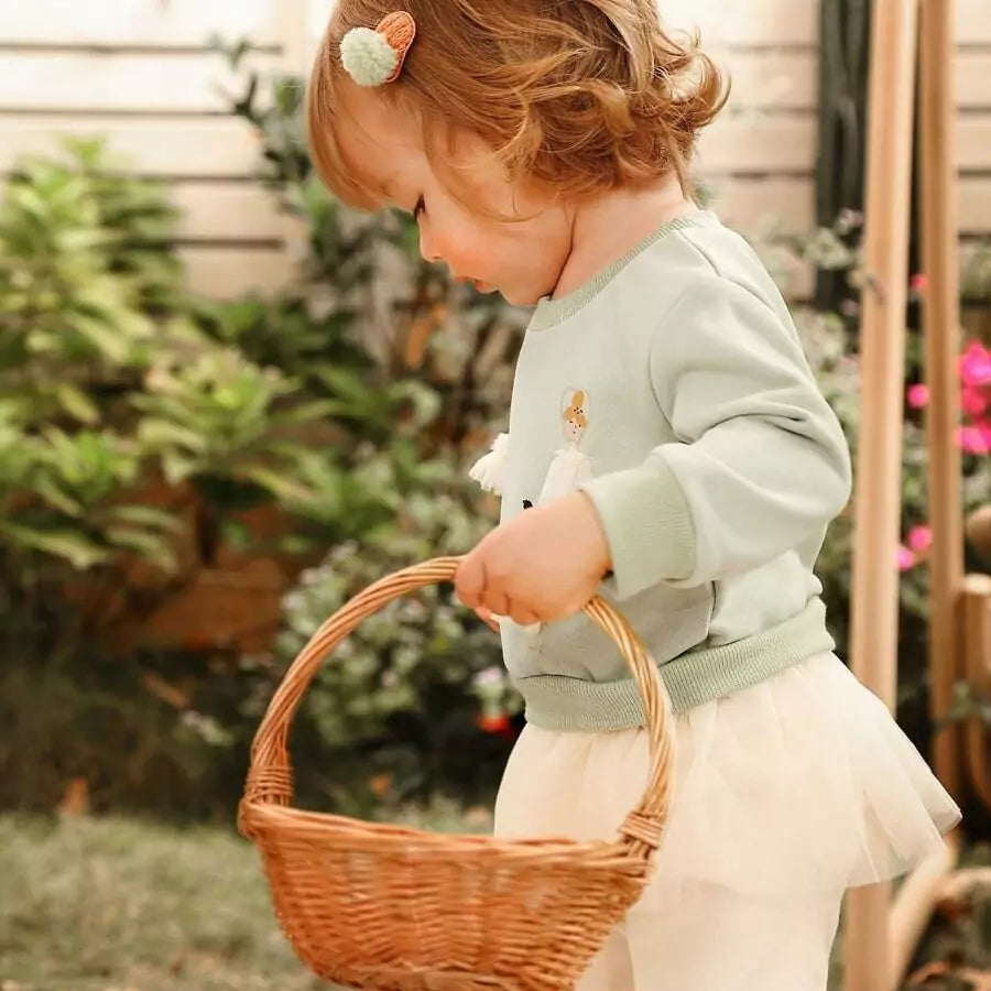 Feito para uso real, o conjunto privilegia a mobilidade: o moletom tem toque agradável e o tule é leve, não incomoda e preserva a liberdade de movimento nas brincadeiras. A modelagem infantil com caimento confortável facilita vestir e tirar, ideal para a rotina corrida de pais e avós.
