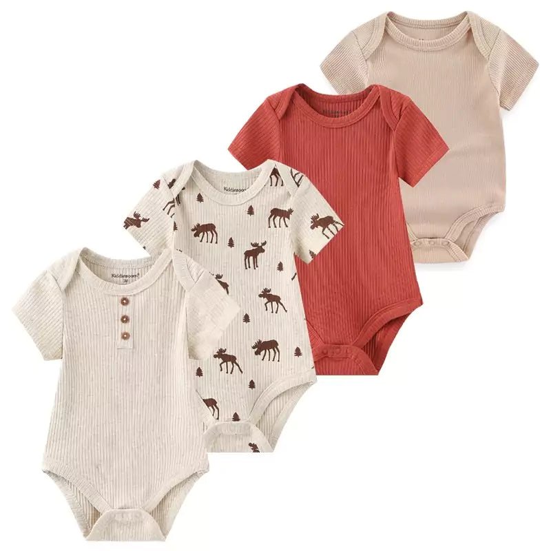 O Kit 4 Bodies Bebê 100% Algodão Bebilu é ideal para bebês de 3 a 12 meses. Fabricados com algodão de qualidade, esses bodies unissex de manga curta oferecem máximo conforto e suavidade para a pele sensível do bebê, mantendo-o fresquinho em qualquer ocasião. Com fechamento prático de botões de pressão, facilitam as trocas e são duráveis, mantendo a maciez após cada lavagem.