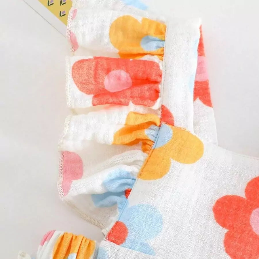 O Macacão Bebê Flor de Algodão 0 a 9 Meses foi feito para acompanhar os momentos mais especiais da primeira infância com conforto absoluto. Confeccionado em 100% algodão, ele possui toque suave e respirável, ideal para a pele delicada dos bebês. Seu design floral colorido e mangas esvoaçantes trazem o charme perfeito para fotos, passeios e até comemorações.