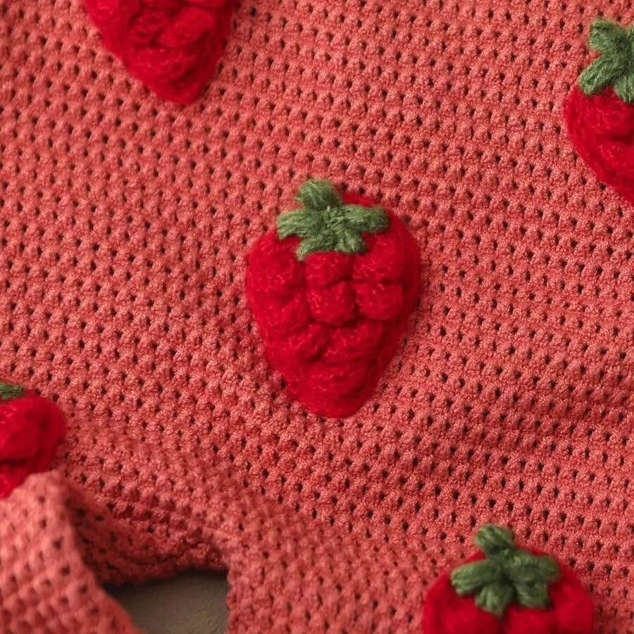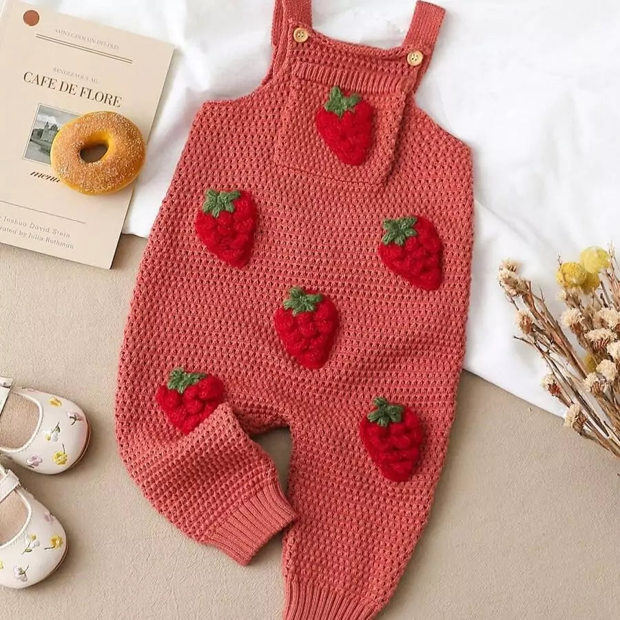 O Macacão Infantil Feminino Morango do Amor foi pensado para unir conforto e fofura no dia a dia. Confeccionado em tricô macio, com bordados de morangos em alto-relevo, entrega um visual delicado e acolhedor para passeios, fotos e momentos em família.