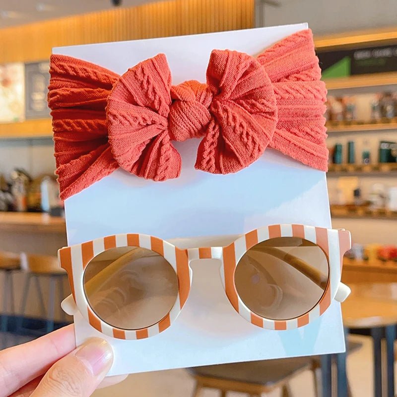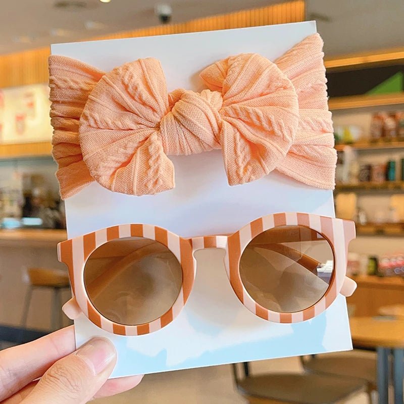 Transforme o visual das suas pequenas com o nosso Óculos de Sol Infantil Listrado com Laço para Meninas! Combinando estilo e diversão, este conjunto é perfeito para passeios no parque, dias na praia ou ocasiões especiais.