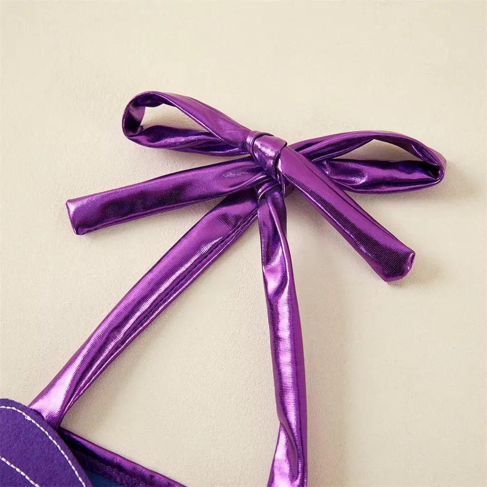 Biquíni Infantil Sereia com Laço Roxo, Escamas Verdes e Bandana Sereinha