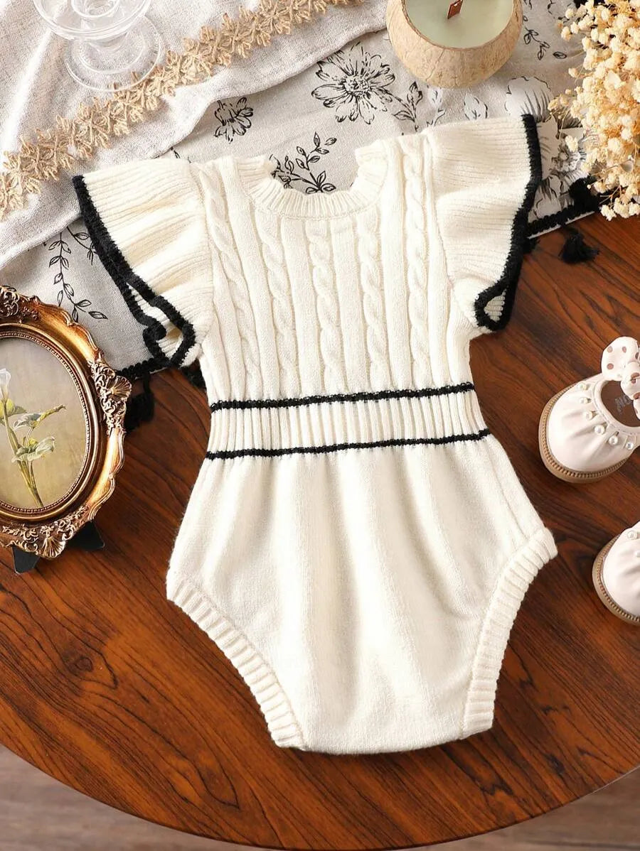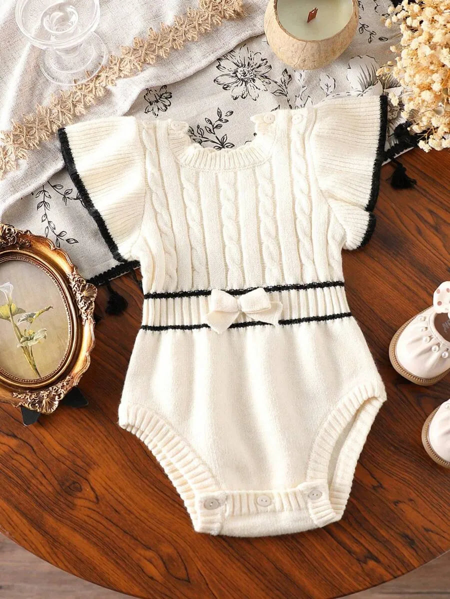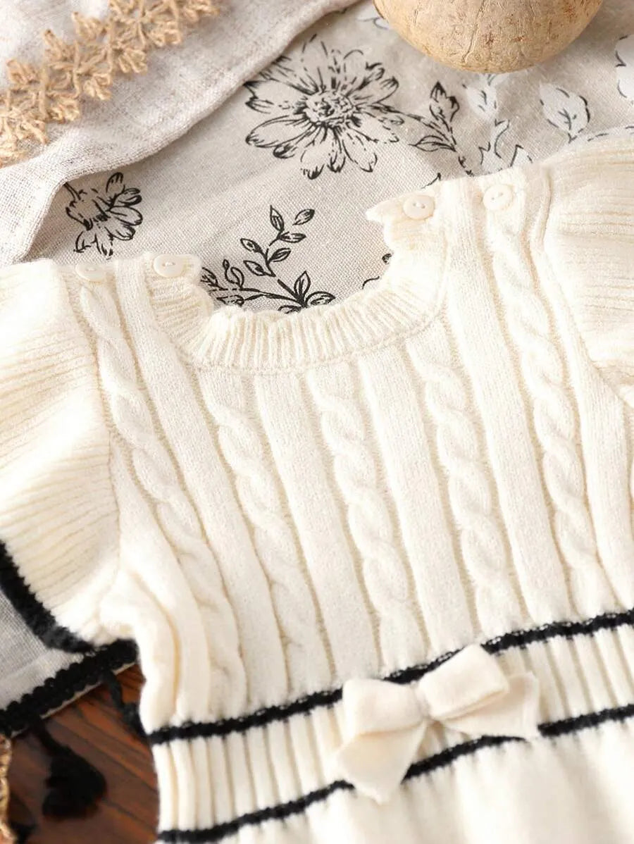 O Macaquinho de Tricô para Bebê Menina Branco e Preto 0-18 Meses combina delicadeza, conforto e um visual clássico que nunca sai de moda, ideal para ocasiões especiais ou uso diário com elegância.