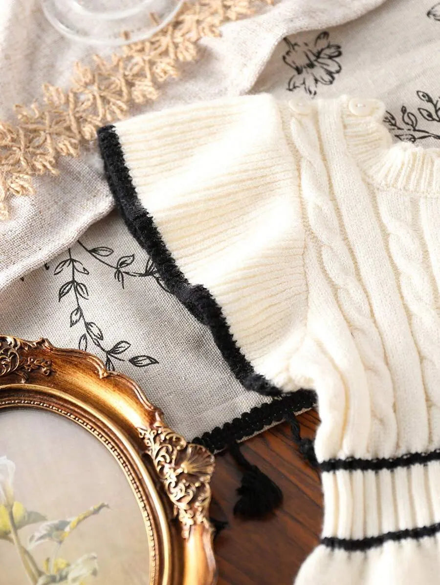 Macaquinho de Tricô para Bebê Menina Bege e Preto 0-18 Meses